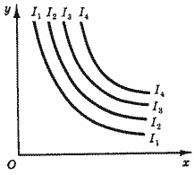 Свойство 3. Кривая безразличия может быть проведена через каждую точку в пространстве благ (по предположению I о сравнимости). Таким образом, мы получаем множество кривых безразличия - карту безразличия (рис. 4), содержащую полную информацию о системе предпочтений потребителя.