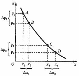 Пусть x1x2 = x3x4 (рис. 5). Тогда при переходе из точки А в точку В потребитель сохранил общую полезность набора благ при увеличении потребления блага Х на x1x2 единиц и уменьшении потребления блага Y на y1y2 единиц. При переходе из точки С в точку D потребитель сохранил общую полезность при увеличении потребления блага Х на x3x4 = x1x2 единиц и уменьшении потребления блага Y на y3y4 единиц; при этом y1y2 > y3y4.