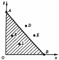 Рис. 2. Множество возможностей потребителя. K и L - доступные наборы, D и Е - недоступные.
