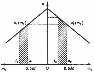 Этот вывод для общества, состоящего из двух человек, иллюстрирует рис. 1, на котором по вертикальной оси откладывается полезность, а по горизонтальной, вправо и влево от нуля, доходы каждого из двух индивидов.