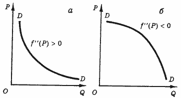 Рис. 6. Вогнутая (а) и выпуклая (б) кривые спроса