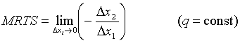 Графически предельная норма технической замены изображается взятым с обратным знаком угловым коэффициентом наклона касательной в данной точке изокванты к оси абсцисс.