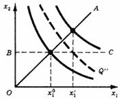 Теперь производственная функция имеет вид F*(х1, х2), а ее изокванты - кривые на плоскости х1 х2.