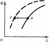 Рис. 17. Сдвиг графика производствен результате технического прогресса