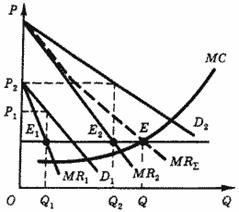 Поскольку дополнительная единица товара, проданная на любом из сегментов рынка, приносит фирме одинаковую дополнительную выручку, равную предельной выручке на каждом из сегментов, предельная выручка фирмы на сегментированном рынке в целом также будет равна этой величине: