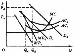Фирма, действующая в условиях монополистической конкуренции, конечно, не совпадает с целой отраслью, как это было в случае фирмы-монополии. Но благодаря дифференциации на своем сегменте рынка она монополист. Поэтому и кривая спроса приобретает характерный отрицательный наклон: рост объема реализации достигается за счет снижения цен.