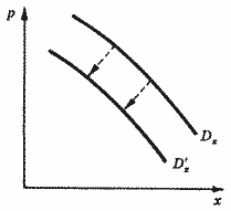 Рис.6. Сдвиг кривой спроса на ресурс при снижении цены заменяющего ресурса.