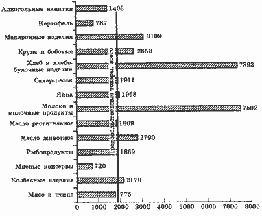 Среднее увеличение цен на продовольствие с 1992 по 1996 г. составило 1937 раз. Но эта средняя цифра складывается из очень разных темпов удорожания отдельных благ.