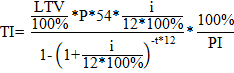 PI – доля платежа по ипотечному кредиту в доходах семьи, %.