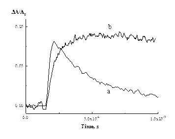 | Осциллограммы исчезновения Т-Т поглощения (а) и появления поглощения цис -изомера (b) |