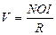 Базовыми понятиями в методе капитализации являются понятия прогнозируемого чистого операционного дохода (NOI) и ставки капитализации (R). Если в проведенном анализе стоимости используется доход за один год (или среднегодовой доход), то такой метод оценки называется методом прямой капитализации. В рамках данного метода стоимость недвижимости (V) рассчитывается по формуле (8.3):
