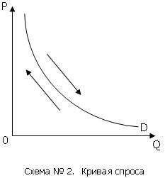 Функция спроса (demand function) - функция, определяющая спрос в зависимости от влияющих на него различных факторов. Важнейшим из них является цена на единицу блага в данный момент. Мы уже выяснили, что чем ниже цена, тем выше спрос, и наоборот. Изменение цены означает движение по кривой спроса (см. схема № 2).