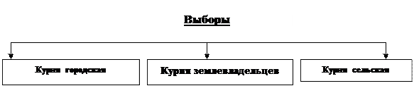 Избирательная система комбинировала сословное начало с имущественным цензом.
