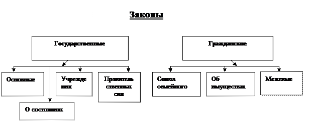 К государственным законам относились также законы предохранительные (уставы благочиния) и законы уголовные.