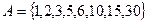 Пример 1. Даны числа от 1 до 30. Наудачу выбирается одно число. Найти вероятность того, что это число является делителем 30.
