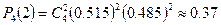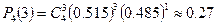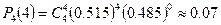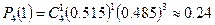 Пример 1. В результате обследования были выделены семьи, имеющие по четыре ребенка. Считая вероятность появления мальчика в семье равной 0.515 найти наивероятнейшее число появления мальчиков в семье c четырьмя детьми.
