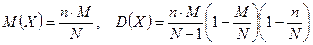 имеет гипергеометрическое распределение, то ее числовые характеристики могут быть найдены по формулам: