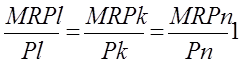 Для определения оптимальной комбинации ресурсов, максимизирующей прибыль, интерпретируется общее правило формирования спроса на отдельные виды ресурса.