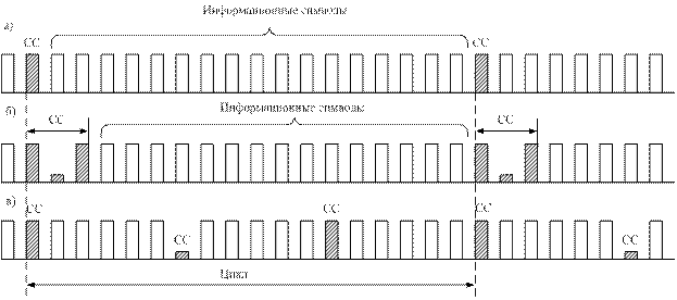 Сосредоточенные СС передаются полностью в начале каждого цикла передачи. Рассредоточенные СС передаются в разных местах цикла передачи, между информационными символами.