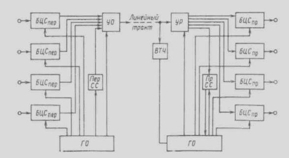 · устройства объединения УО в тракте передачи и разделения УР в тракте приема потоков;