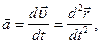 Мгновенное ускорение - векторная величина, равная первой производной скорости по времени: