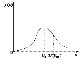 асимметричен. Положение максимума характеризует наиболее часто встречающуюся скорость, которая называется наиболее вероятной. Скорости, превышающие uв, встречаются чаще, чем меньшие скорости.