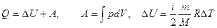 Т.к. Т = const, DT=0, DU=, Q=A.