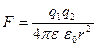 где q1,q2- величины зарядов; r - расстояние между зарядами;