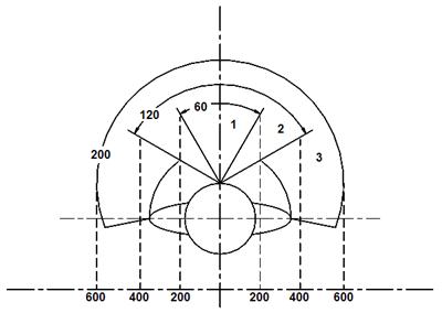 2. зона лёгкой досягаемости ограничена дугами описываемыми расслабленными руками при движении плечевых суставов;