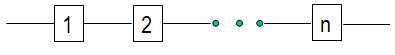 Последовательное соединение элементов представляет собой неизбыточную структуру без резервирования. Отказ каждого из элементов приводит к отказу системы в целом. Блок-схема надежности последовательного соединения n элементов представлена на рис.1.
