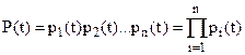 Вероятность безотказной работы P(t) для последовательного соединения определяется как произведение вероятностей безотказной работы ее элементов pi(t)