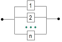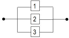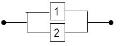 Параллельное соединение элементов представляет собой избыточную структуру с нагруженными (активными) резервными элементами, показанную на блок-схеме рис.2.