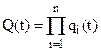 Одновременно работают все n элементов. Система работоспособна пока работает хотя бы один элемент из n. Отказом системы является отказ всех n ее элементов. Тогда вероятность отказа системы Q(t) будет равна произведению вероятностей отказа ее элементов qi(t):