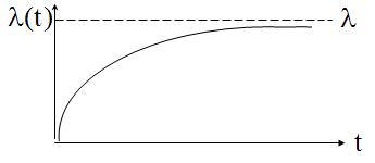 Исследование выражения (13) показывает, что интенсивность отказов дублированной схемы, состоящей из элементов с постоянными интенсивностями отказов, является функцией времени, при больших временах стремящейся к λ одного элемента (