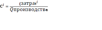 6. Определяется себестоимость одной физической единицы по каждому виду продукции путём деления затрат по данному виду продукции на физический объём данного вида продукции: