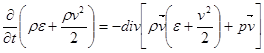 Слева в (15) стоит производная от полной (внутренней и кинетической) энергии газа в данной точке пространства. Так как термодинамические свойства вещества предполагаются известными, то