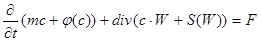 Расширим представленную модель (1) – (7) и включим в неё пассивную примесь. Будем считать, что пассивная примесь попадает в пласт вместе с водой и не может перейти из воды в нефть. Известно, что перенос примеси при однокомпонентной фильтрации описывается следующим уравнением: