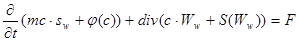 Обобщим уравнение (9) на случай многокомпонентной фильтрации. Предполагается, что фазы (вода и нефть) не смешиваются, и пассивная примесь может иметь ненулевую концентрацию