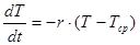 Из опыта ясно, что тело будет остывать до тех пор, пока его температура не сравняется с температурой среды, но как будет происходить процесс остывания со временем? Для простоты рассмотрения предположим, что тело обладает высокой теплопроводностью, так что температура быстро выравнивается по всему объему, т.е. считаем, что равномерно нагретое тело будет так же равномерно остывать, и задачу распределения температуры в объеме мы не рассматриваем. Это существенное упрощение модели явления, так как в этом случае температура является функцией лишь одной переменной – времени
