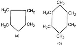 Нафтеновые углеводороды, впервые открытые в бакинских нефтях В.В.Марковниковым, являются предельными (не имеющими двойных связей) и поэтому называются еще циклопарафинами. В основном они состоят из гомологов циклопентана (а) и циклогексана (б), имеющих боковые парафиновые цепи различной длины и степени разветвленности, хотя в нефтях обнаружены нафтены с 2-4 циклами (кольцами, ядрами).