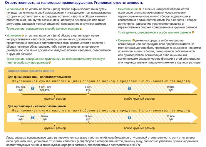 - превышающие 6 000 000 руб. (в п. 11 Постановления Пленума ВС от 28.12.2006 N 64 разъясняется, что в данном случае ответственность за преступление может наступить и за отдельный налоговый период, если уклонение от уплаты одного или нескольких налогов (сборов) составило крупный или особо крупный размер и истекли установленные налоговым законодательством сроки их уплаты).