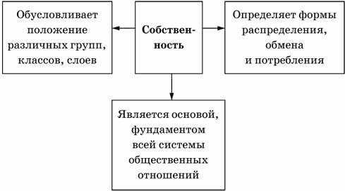 Собственность как экономическая категория есть отношение между людьми по поводу материальной основы хозяйственной деятельности, т.е. средств производства. В этом плане собственность тесно связана с экономической властью, с управлением производством, с повседневными отношениями между людьми. Поскольку конечной целью всякой хозяйственной деятельности является достижение определенного эффекта при производстве и реализации товаров и услуг, распорядителем этого эффекта и его владельцем является собственник материальных факторов производства, т.е. земли и капитала. Поэтому отношения собственности составляют основу социально-экономических отношений между людьми, определяют характер этих отношений, поведение людей.