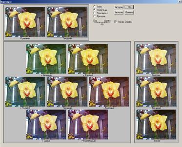 Наиболее наглядный способ коррекции цвета представлен командой Вариации меню Фильтры/Правка.