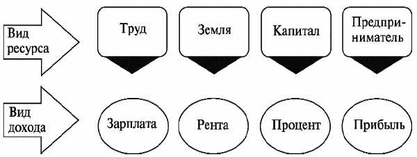 Рис. 7 Основные виды ресурсов производства и доходов от их использования