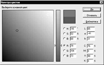 (Color Picker). Переместите указатель в пределы цветового поля окна, и он примет вид кружка. Установите кружок в область нужного оттенка и щелкните кнопкой мыши, чтобы выбрать его. Для настройки цвета вы можете использовать один из следующих приемов: