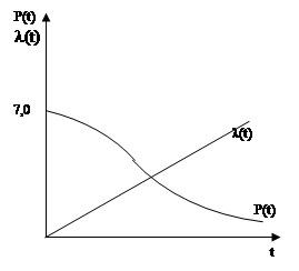 3) Интенсивность отказа l(t) – это условная плотность вероятности возникновения отказа не восстанавливаемого объекта, определенного рассмотренного момента времени, при условии, что до этого момента отказ не возник.