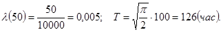 Значит: Р(50) = е-0б01 · 50 = е-0,05 = 0,0607 Т = 1/l = 100 (час).