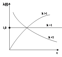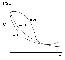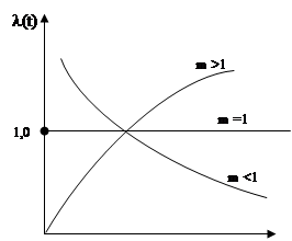 При m < 1 распределение Вейбула можно использовать для оценки надежности изделий при наработке стажа по прошествии времени.