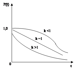 1) Вероятность безотказной работы P(t) – это вероятность того, что в заданном интервале времени t в изделии не возникает отказа.