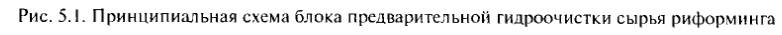 Блок предварительной гидроочистки сырья каталитического риформинга. Основным назначением предварительной гидроочистки сырья является удаление из него веществ, дезактивирующих монометаллические, биметаллические и полиметаллические платиновые катализаторы риформинга. К этим веществам относятся: соединения серы и азота, металлоорганические соединения, содержащие мышьяк, медь и др., а также непредельные соединения, входящие в состав бензинов вторичного происхождения.
